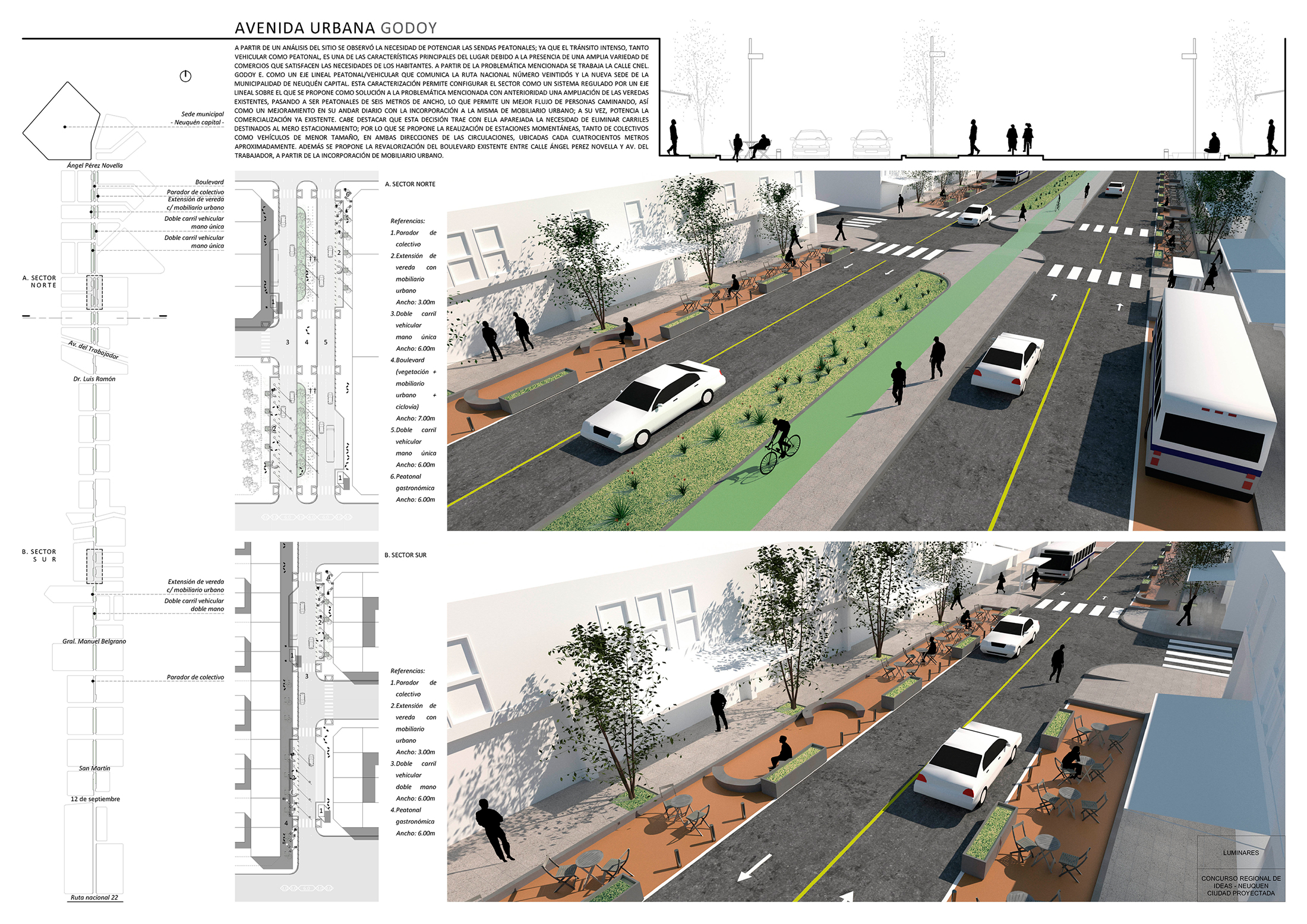 Aporte para la transformación del espacio público, como espacio para el peatón mejorando la calidad espacial por sobre el tránsito automotor, en una calle con gran dinámica urbana. La calle Godoy se planifico como subcentro urbano de la ciudad.